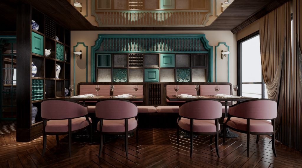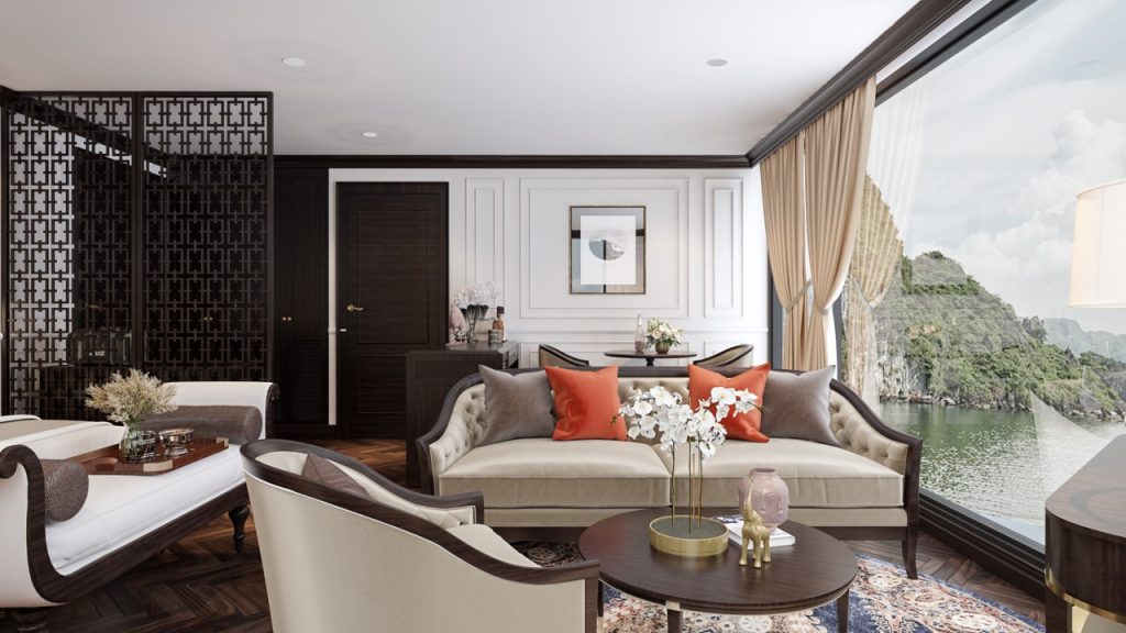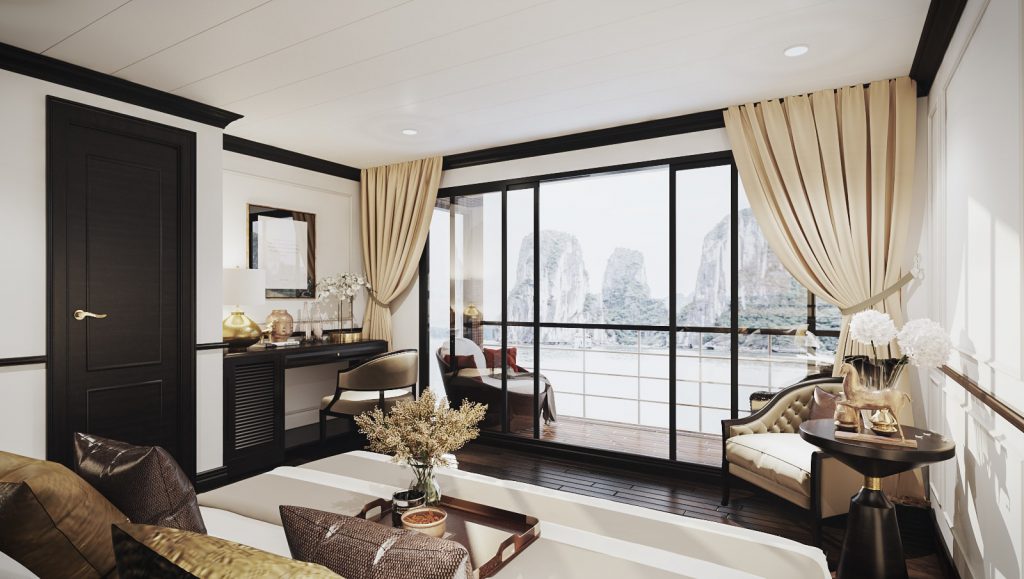Du thuyền được thiết kế dự trên sự tổng hòa của những đường nét văn hóa kiến trúc Phương Đông tinh tế – huyền bí và Phương Tây hiện đại – sang trọng….. điều đó đã tạo nên một du thuyền khác hoàn toàn so với những du thuyền hiện có tại Vịnh Lan Hạ. Phong cách thiết kế An Nam cách tân tích tụ tinh hoa thẩm mỹ tinh tế, sang trọng của Phương Tây nhưng lại xen lẫn nét trầm mặc nhẹ nhàng của văn hoá Phương Đông của tâm hồn Việt. Tất cả phảng phất hoài niệm về một thời đã xa nhưng lại không hề cũ kĩ, dẫn dắt du khách vào bản hoà tấu của biển trong khi thảnh thơi cảm nhận các không gian khác nhau của du thuyền.